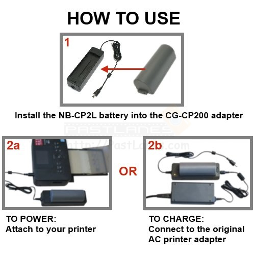 You can attach the adapter directly to your Canon Selphy printer CP910 or older models (require NB-CP2L battery sold separately) and enable you to print anywhere without power outlet. Perfect for use in events and parties when power outlet is not accessible.