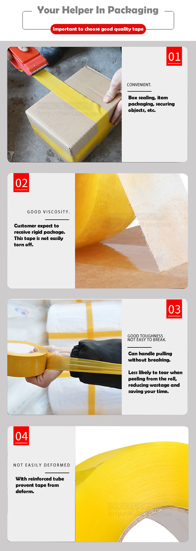 Our clear tape are strong and not easy to tear when peeling, good for use in packaging, mailing and sealing.