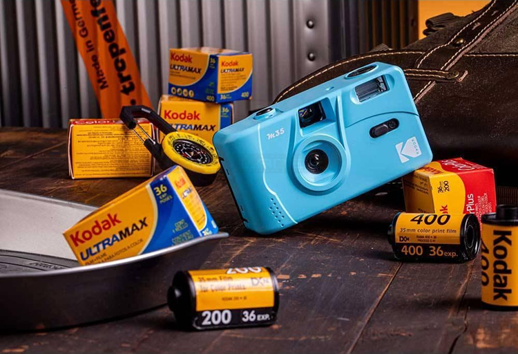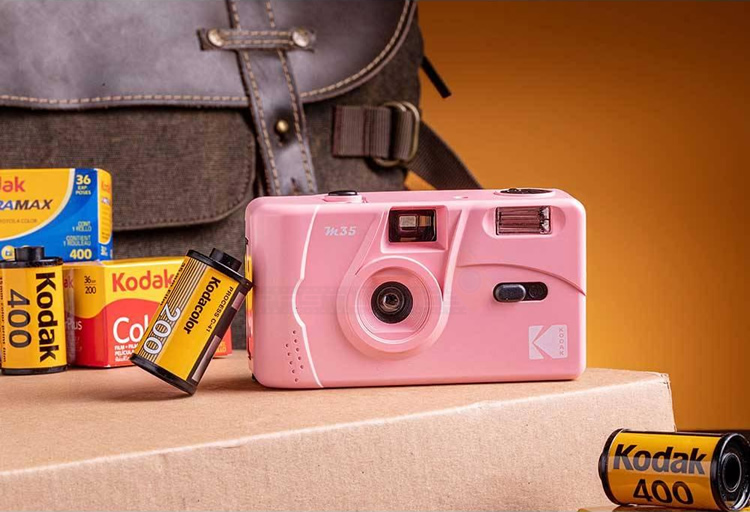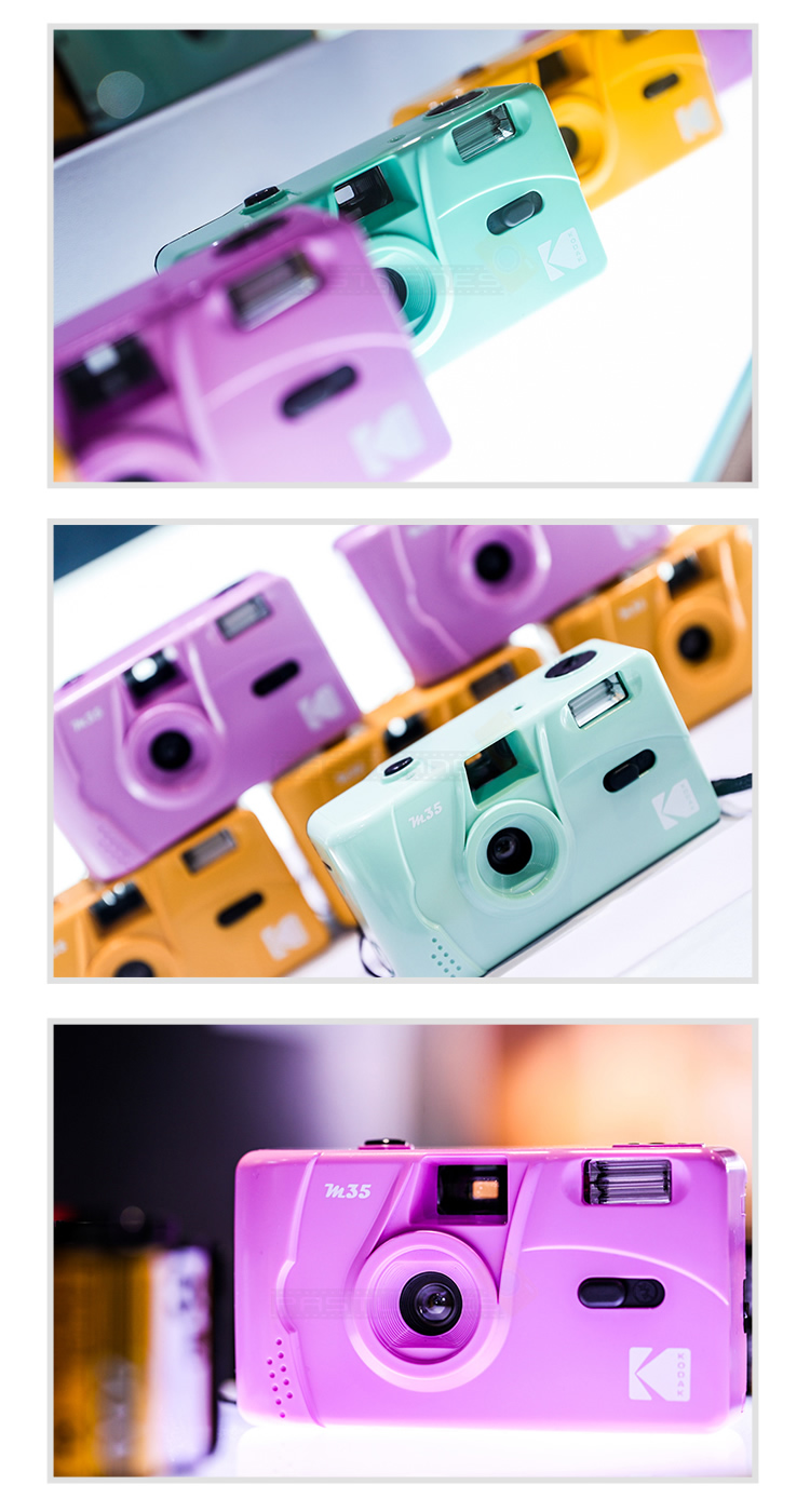 Kodak M35 is a reusable film camera that use 35mm film. Just like it's range of disposable cameras, M35 has fixed focus lens, manual film winding and rewinding and switch to turn flash On/Off. Simply purchase a roll of 35mm film and load it in, take your photos, rewind and bring the film roll to develop at photo developing stores.