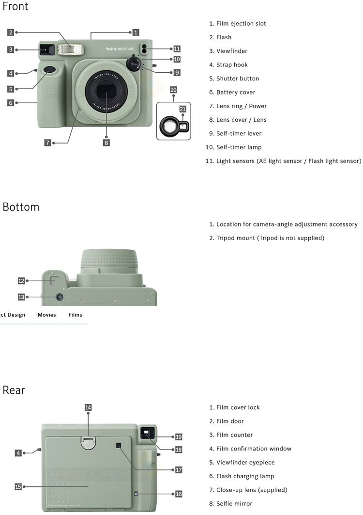 So, when adventure calls, go wide. The understated Green colored body makes the INSTAX WIDE 400 Instant Camera look ready for action, complete with the included Shoulder strap to keep your camera easily at hand when on the go. There’s even a built-in tripod mount (tripod sold separately) for those who love to journal with photos.