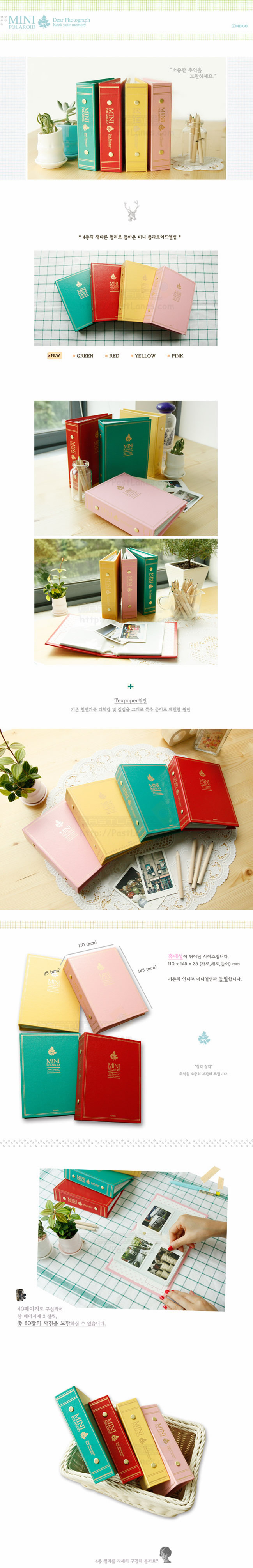 Album has 18 pages, 2 pockets per page and can hold up to 72 mini photos.