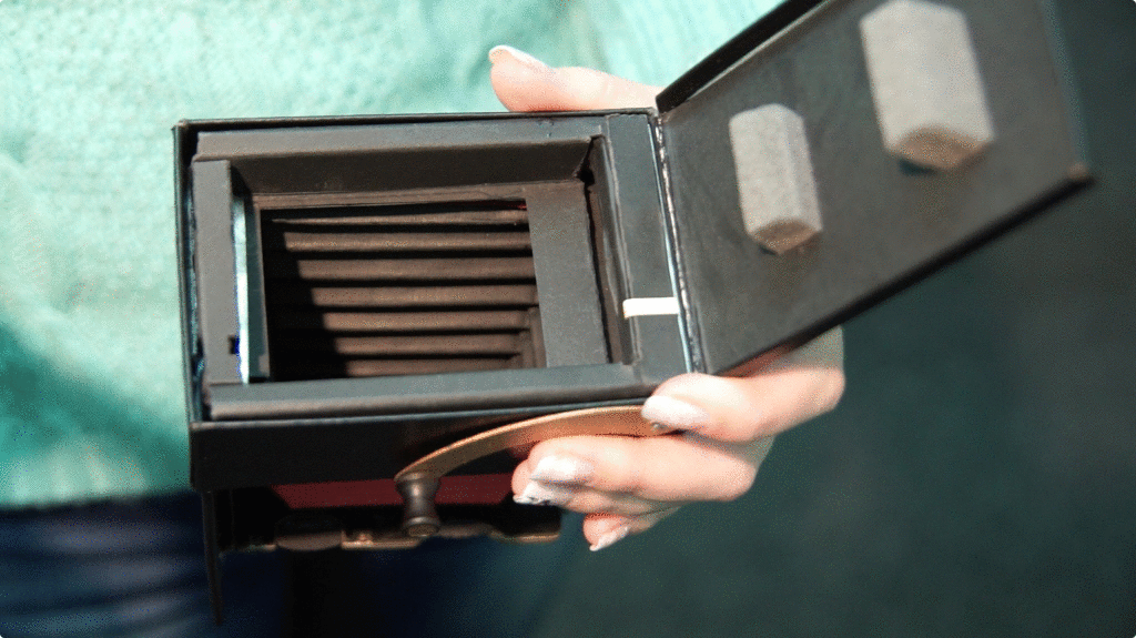 Jollylook is a simple fold out camera for analog photos, made entirely from recycled paper and cardboard. No electronics, batteries or chargers - some paper, a pair of lenses and a cartridge for instant mini photos.