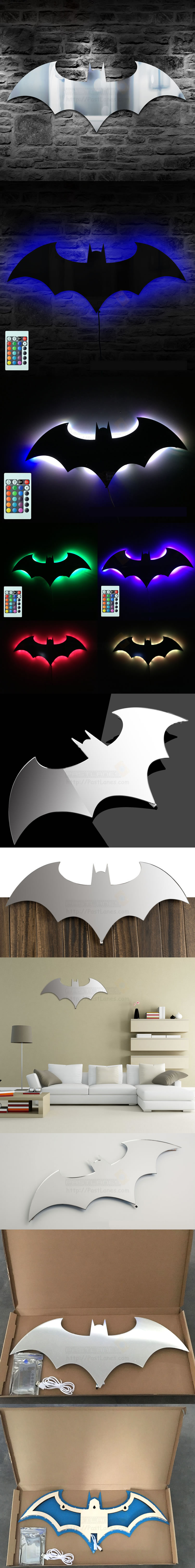 This bat shaped mirror with LED backlight provide a cool decoration for your room. Powered by USB, it is low in power consumption. LED colors can be changed to suit your mood. Dimension: 55.5cm x 24cm.
