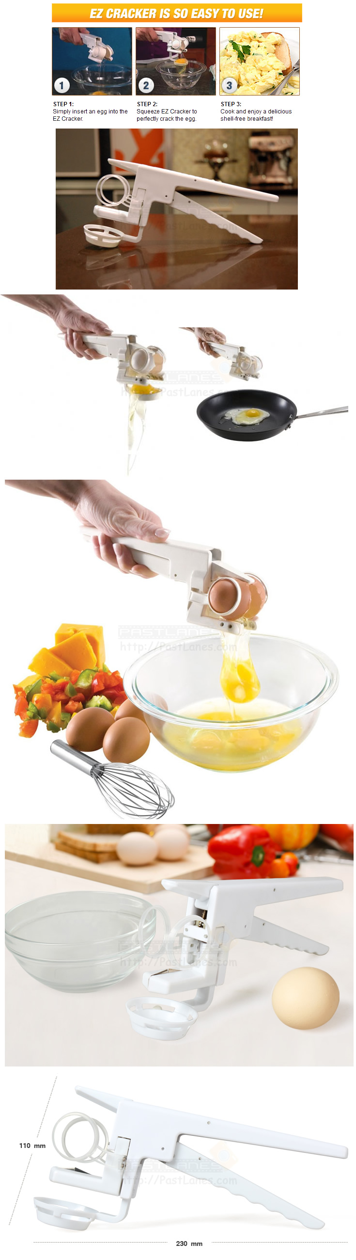 EZCracker as the name suggest, make it easy for you to crack egg without the mess in the kitchen. It also come with a attachment to allow you to easily separate egg yolk from egg white! A must-have tool in every kitchens.