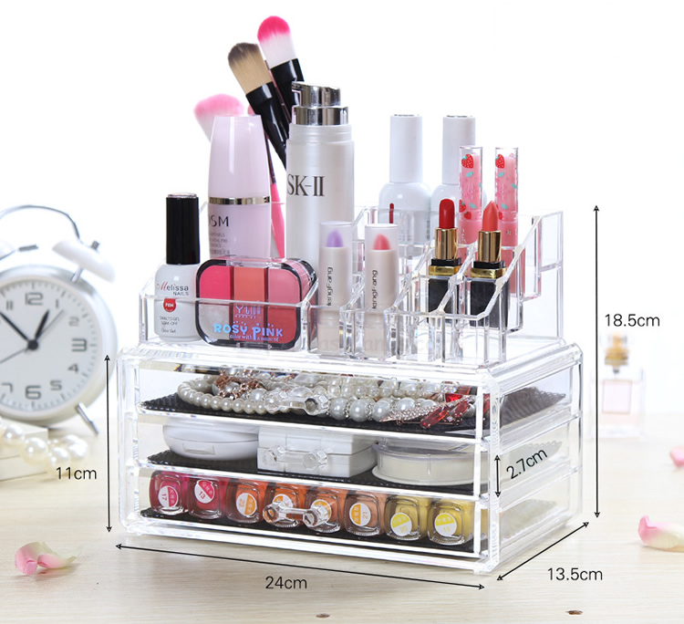 Keep your cosmetic products neatly organized and easy to find with this durable acrylic drawer & organizer.