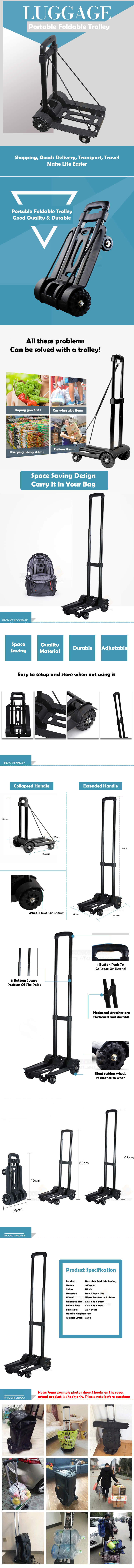 One of the most compact and lightweight trolley with 4 wheels to carry your heavy load from one place to another. You can use it for shopping or carry goods. It is space saving when not in use, you can even put it inside your bag. Can support up to 75kg.