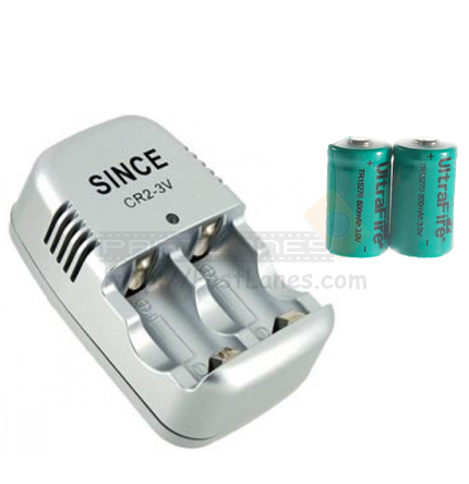 CR2 Charger + 1 Pair Rechargeable Batteries