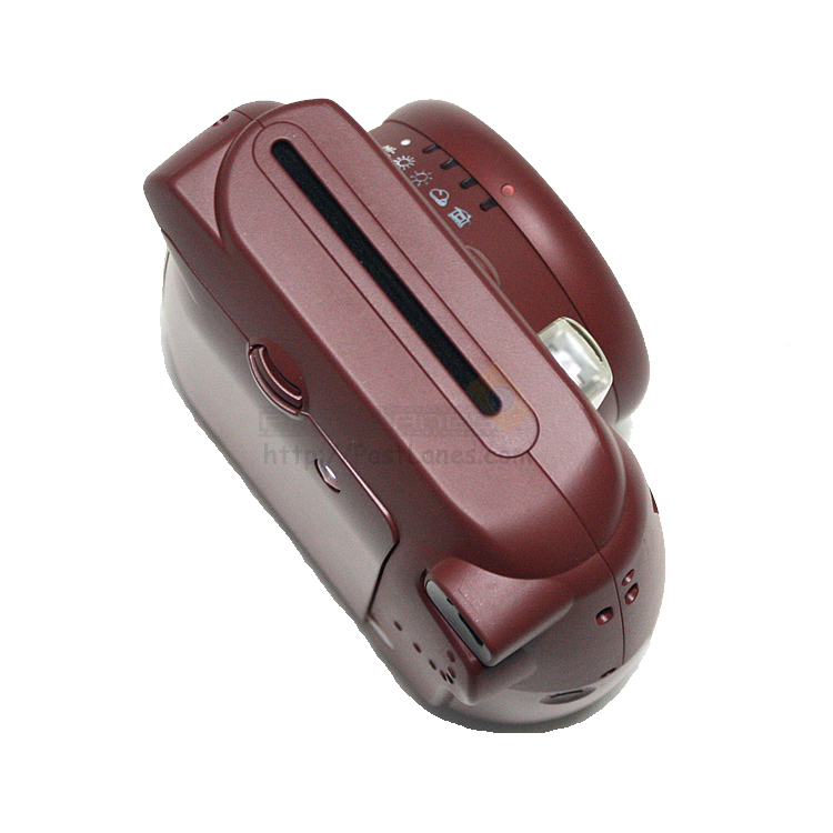 While carrying on the simple design and easy usability of the existing instax mini 7S (hereinafter mini 7S), the new instax mini 8 is approximately 10% smaller than mini 7S in volume ratio. Framing for shooting has becoming easier with the introduction of a real image finder that captures a clear image even at the edges and with the improved visibility of the target mark that is positioned in the center of the finder.