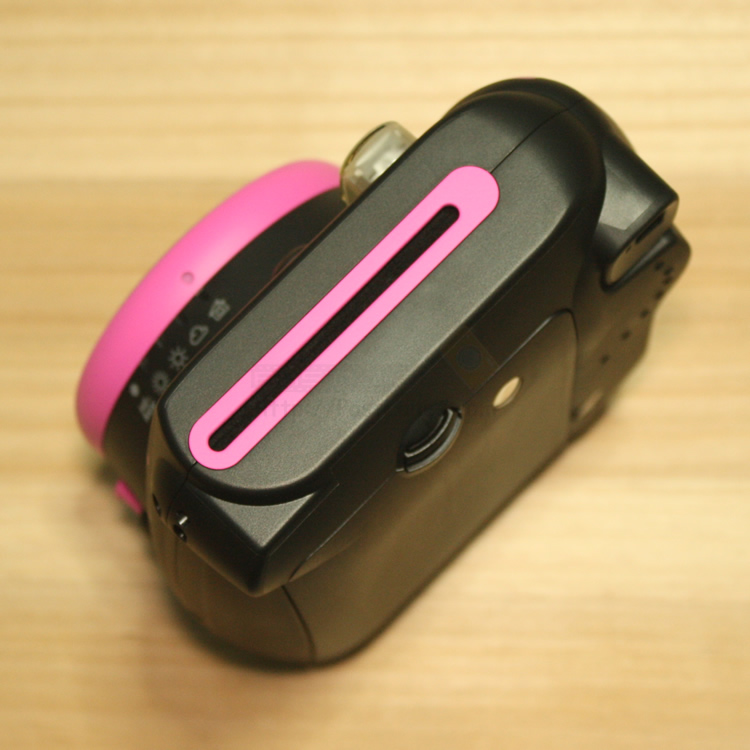 While carrying on the simple design and easy usability of the existing instax mini 7S (hereinafter mini 7S), the new instax mini 8 is approximately 10% smaller than mini 7S in volume ratio. Framing for shooting has becoming easier with the introduction of a real image finder that captures a clear image even at the edges and with the improved visibility of the target mark that is positioned in the center of the finder.